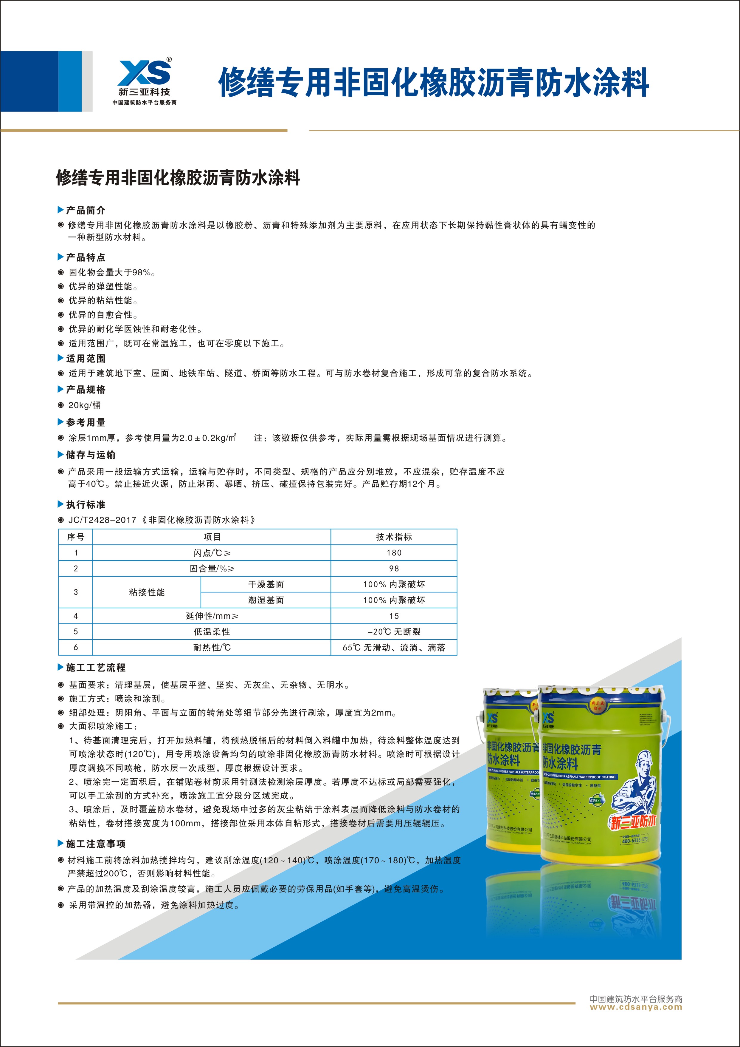 修繕專(zhuān)用非固化橡膠瀝青防水涂料是以橡膠粉、瀝青和特殊添加劑為主要原料,在應(yīng)用狀態(tài)下長(zhǎng)期保持黏性膏狀體的具有蠕變性的一種新型防水材料。